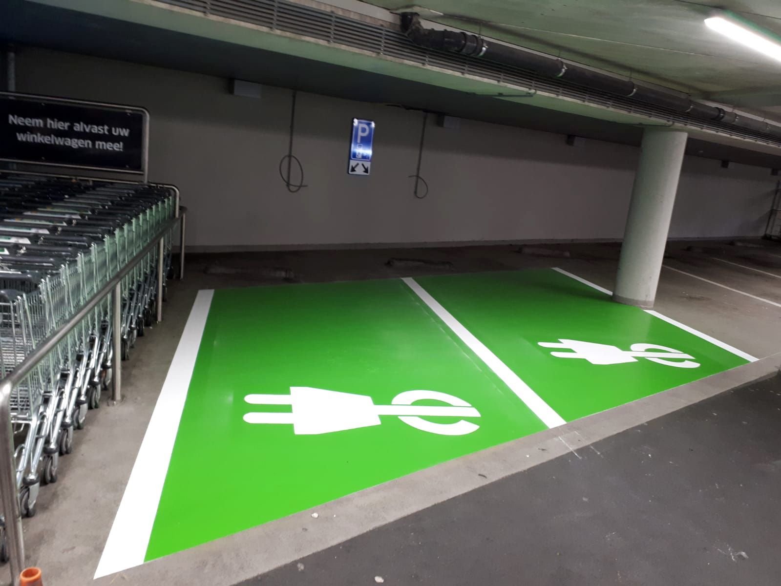 Wegmarkering - parkeervak groen + symbool oplaadpunt - wegenverf